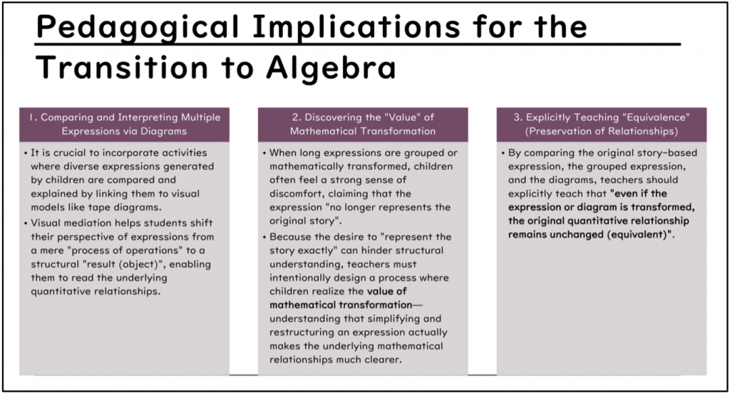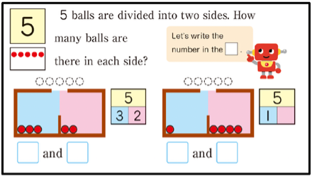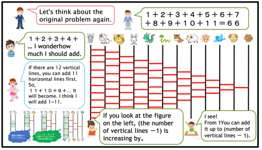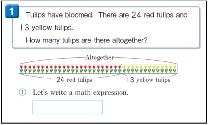This coherence in the Japanese ‘linearity’ model naturally leads to the introduction of the numberline (kazu no sen 数の線), potentially reducing the cognitive load. The number line is used as a tool for showing the relationship between numbers rather than for answer finding.