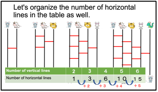 This Grade 4 (Y5 in the UK) ‘Amida Lottery’ problem solving task, gives children the opportunity to use and demonstrate mathematical behaviours, learn from collaboration with their peers, identify the mathematical structure and for the algebraic thinking to be developed: