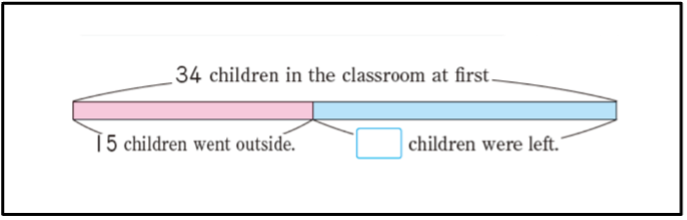 Mathematics expression to find the children left 15 + 🔲 = 34